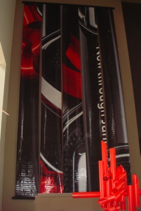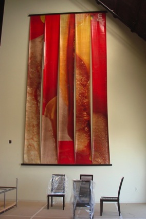 Our location, a loft in downtown LA, had gigantic walls, so the Production Designer asked me to source some discarded billboards that we could cut up and essentially make large, flat art work from.